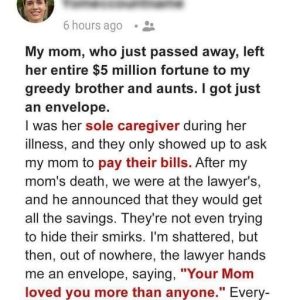 My late mom left $5 Million inheritance to my greedy brother and aunts & I only got an envelope with an address