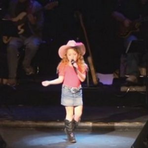 A young girl with a mini cowgirl outfit walks to the stage to sing a big country song, but the real surprise comes when the music begins….