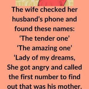 The wife checked her husband’s phone and found these names: ‘The tender one’ ‘The amazing one’ ‘Lady of my dreams’ She became upset and called the first…