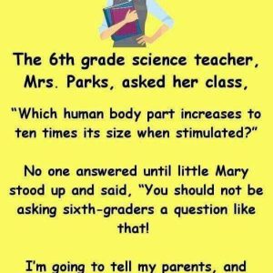 The 6th-grade science teacher, Mrs. Parks, asked her class, “Which human body part increases to ten times its size when stimulated?” No one answered until little Mary…