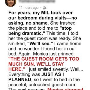 Every time my in-laws visited, my mother-in-law Monica barged into our home like she owned it—especially our bedroom. She’d toss aside my things, light her overpowering candles,…