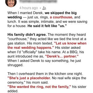 When Layla and Derek had a simple courthouse wedding, his family dismissed it as “not real.” They wanted a proper celebration, but Layla, feeling disrespected, decided to…