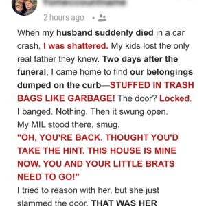 Losing my husband shattered me, but two days after his funeral, my mother-in-law made it worse. She kicked me and my kids out, changing the locks and…
