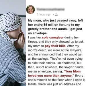 In families, disputes over inheritance are not uncommon and can cause deep rifts. One woman faced such a situation when her mother passed, leaving a substantial inheritance….