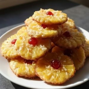 These pineapple upside-down sugar cookies bring a cheerful, tropical spin to a beloved classic. Soft, buttery, and gently sweet, each cookie is crowned with a caramelized pineapple…