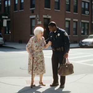 It started as just another routine moment. I was on my lunch break, patrolling my usual route, when I saw her—frail, cane in hand, hesitating at the…