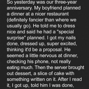 I Thought Our Anniversary Dinner Would Be a Proposal – But My Boyfriend Left Me Sh0cked Instead